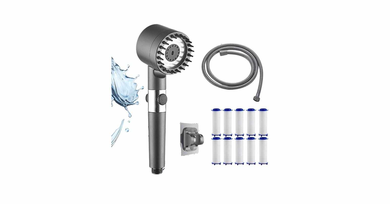 It has a 7-stage filter system that gets rid of chlorine, heavy metals, rust, and other harmful impurities that hurt hair and skin. It also raises the water pressure for a spa-like rinse.